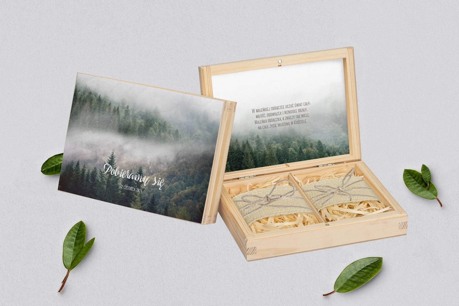 Pudełko na obrączki prostokątne naturalne - Forest - Motyw 2