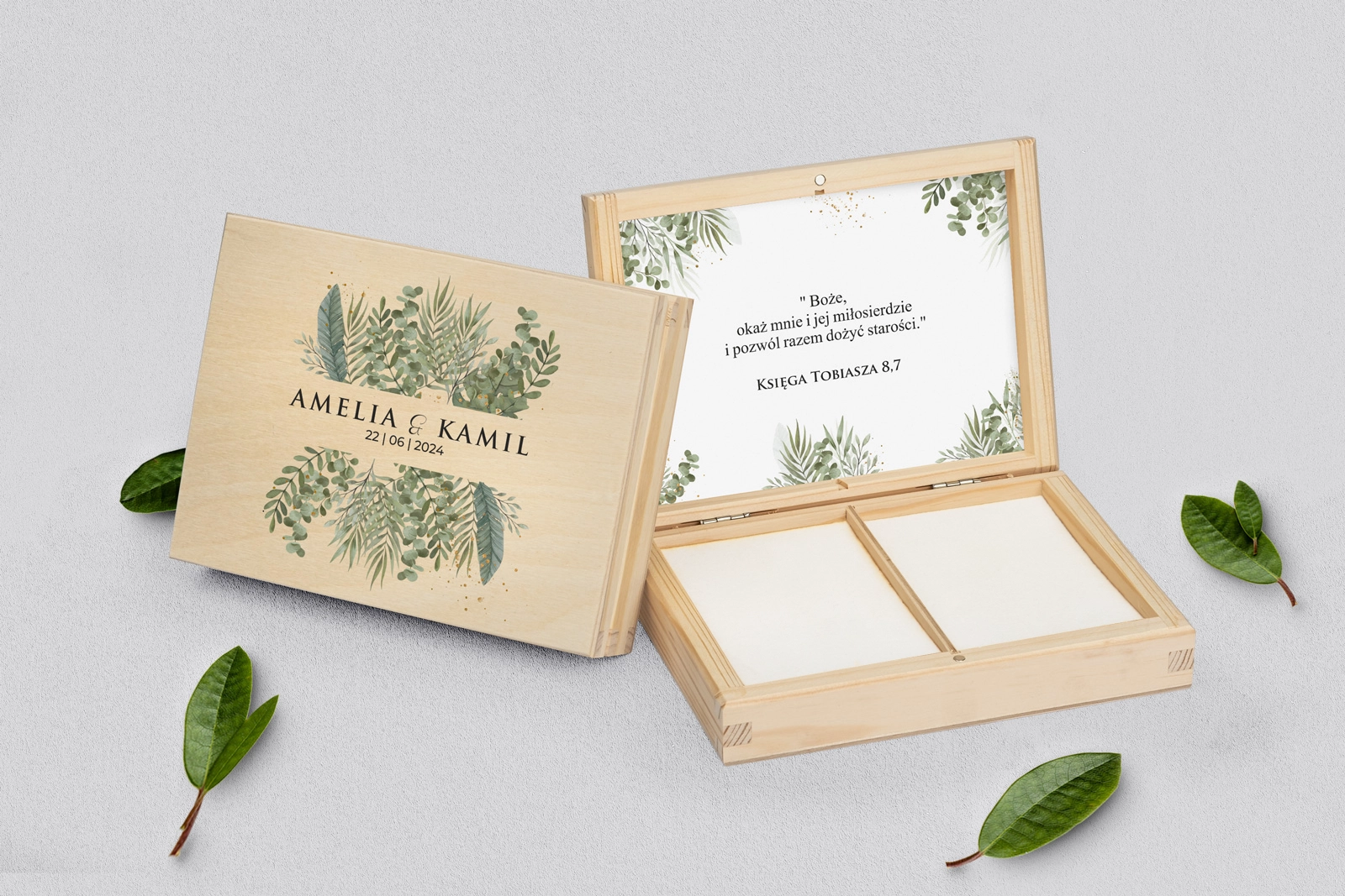Pudełko na obrączki prostokątne naturalne - Leaves Motyw 2