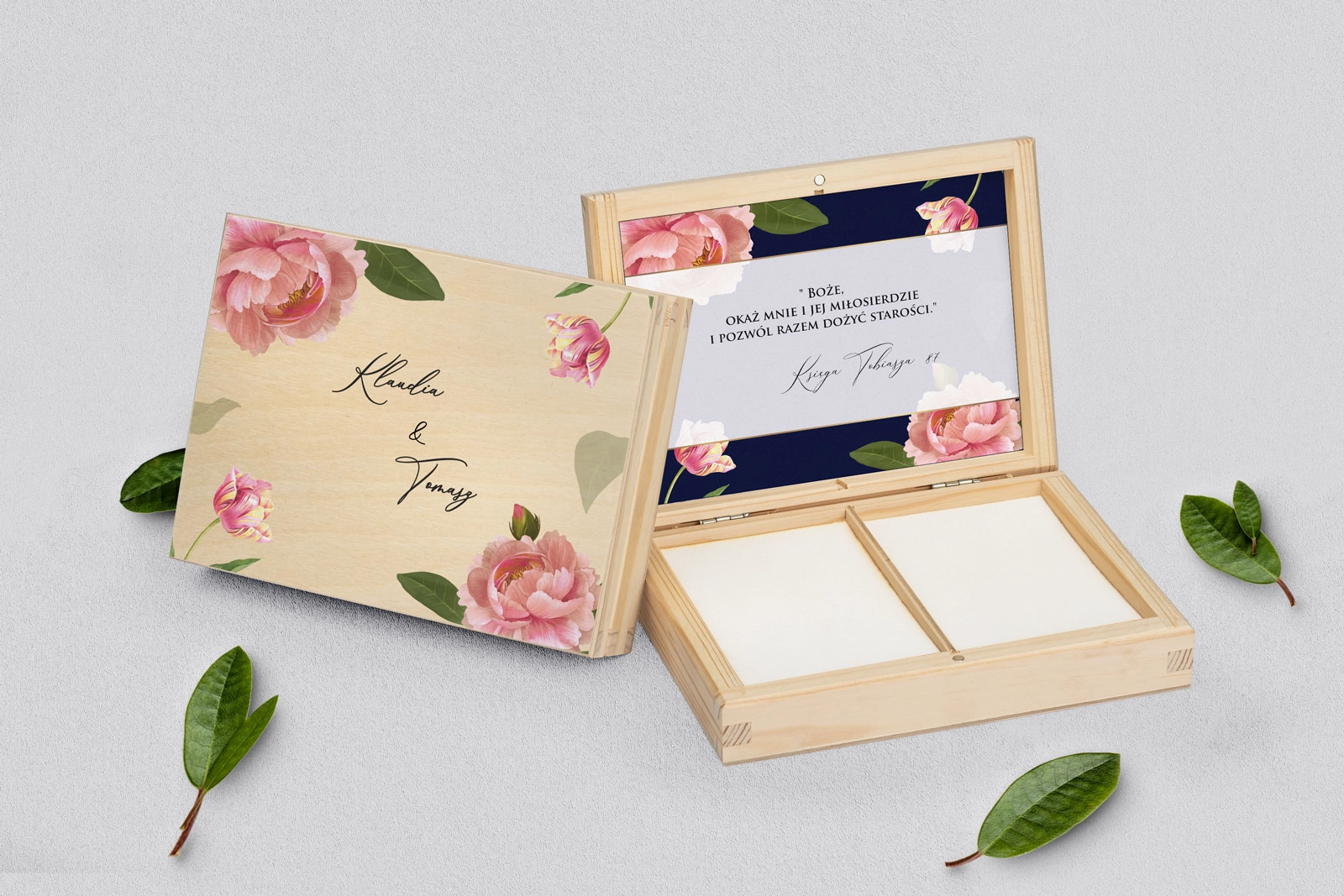 Na tej karcie produktu kupujesz Pudełka na obrączki w konfiguracji określonej w specyfikacji.