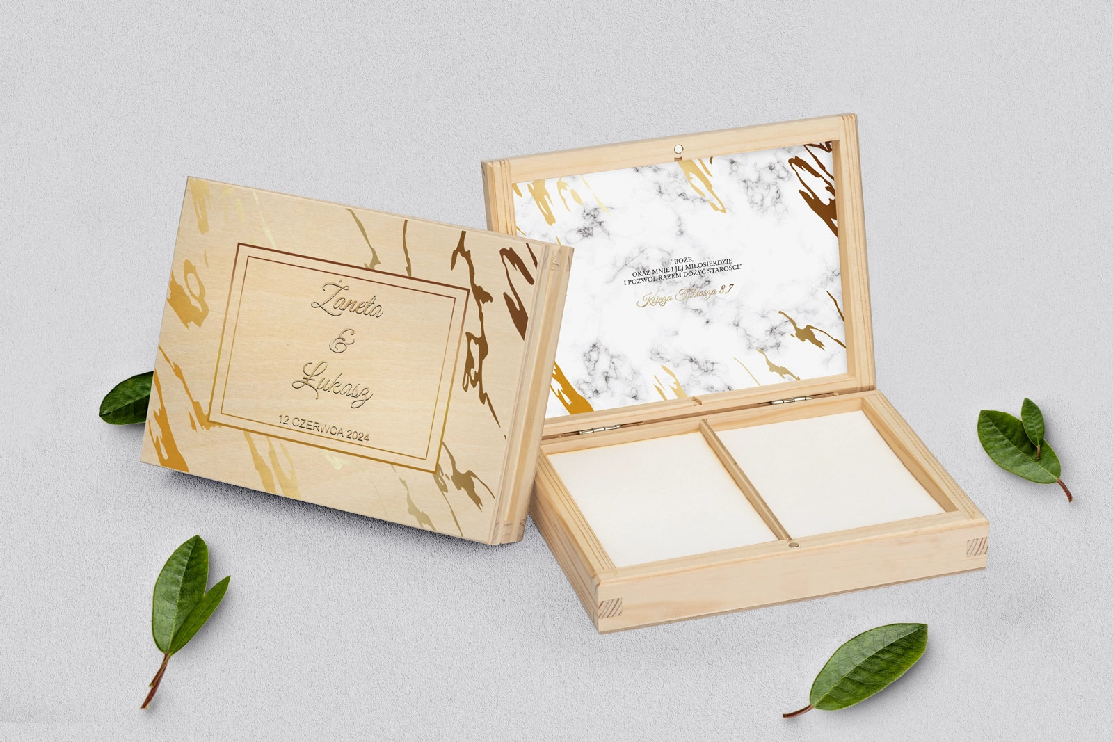 Pudełko na obrączki prostokątne naturalne - Marmur i Złoto Motyw 3