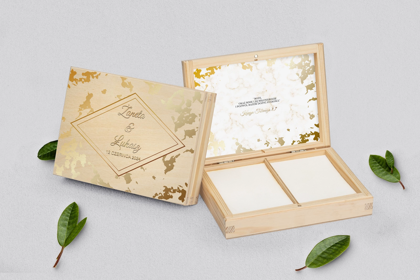 Pudełko na obrączki prostokątne naturalne - Marmur i Złoto Motyw 5
