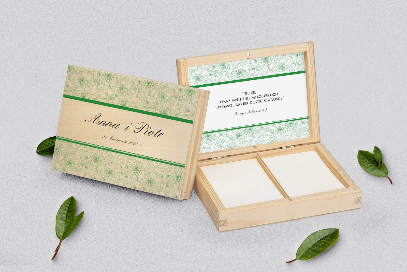 Na tej karcie produktu kupujesz Pudełka na obrączki w konfiguracji określonej w specyfikacji.