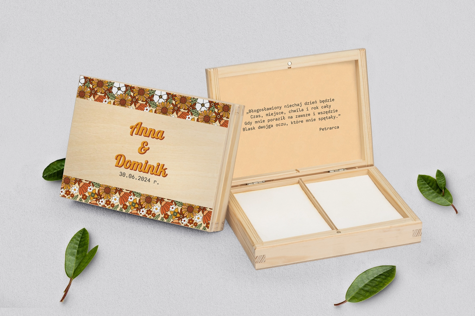 Pudełko na obrączki prostokątne naturalne - Retro Style Motyw 1