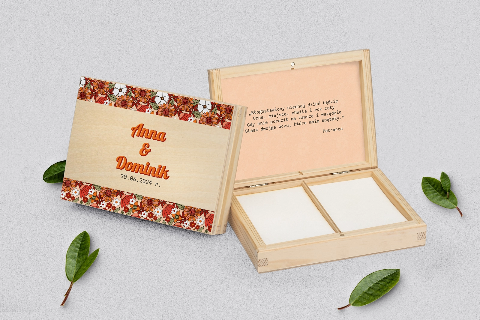 Na tej karcie produktu kupujesz Pudełka na obrączki w konfiguracji określonej w specyfikacji.