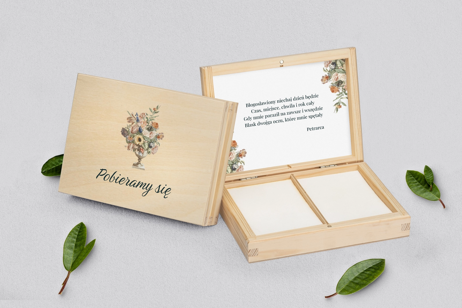 Na tej karcie produktu kupujesz Pudełka na obrączki w konfiguracji określonej w specyfikacji.