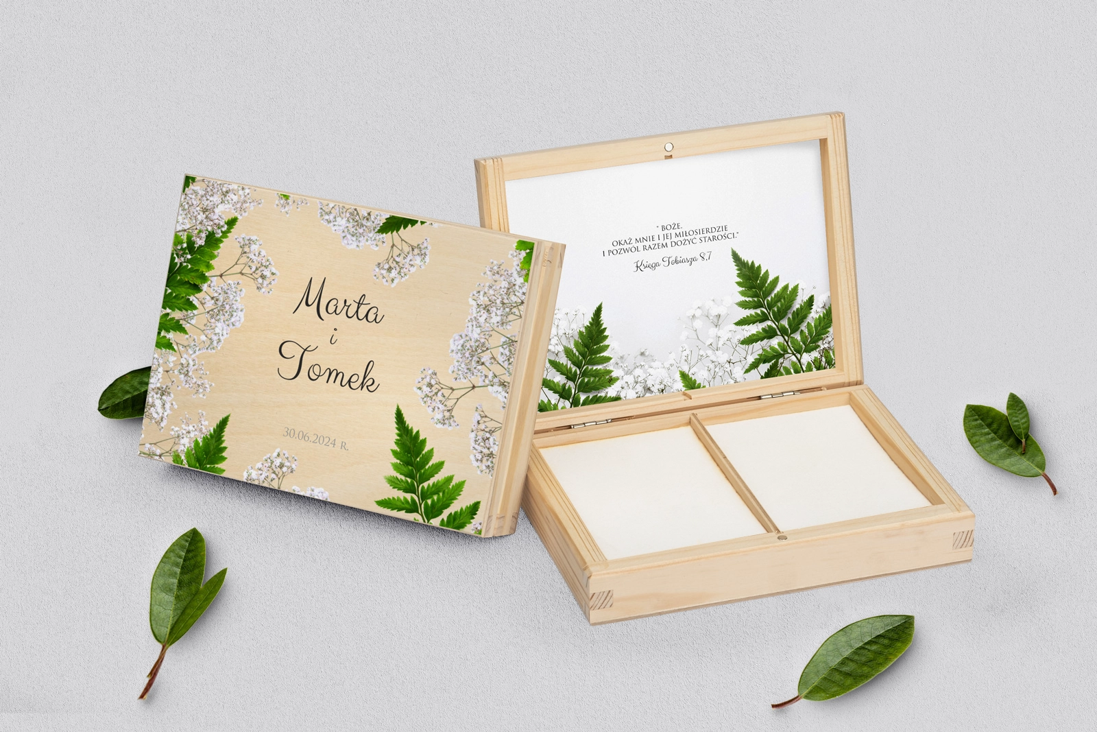 Na tej karcie produktu kupujesz Pudełka na obrączki w konfiguracji określonej w specyfikacji.