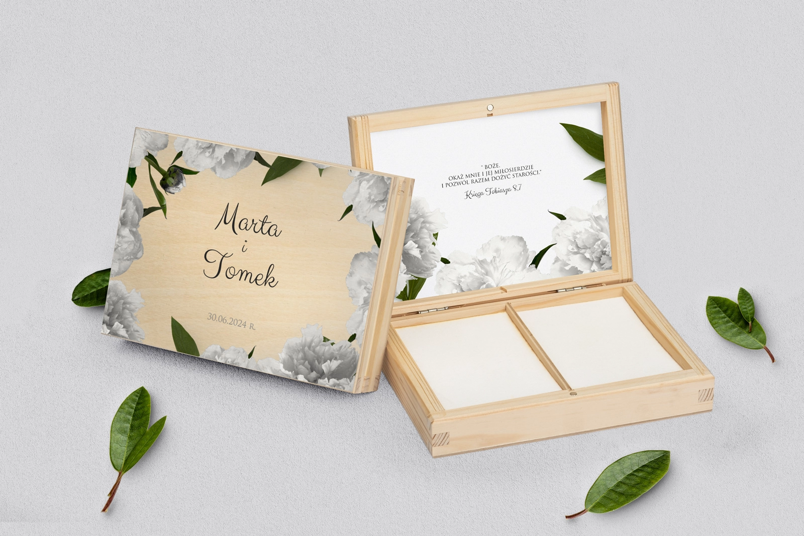 Na tej karcie produktu kupujesz Pudełka na obrączki w konfiguracji określonej w specyfikacji.