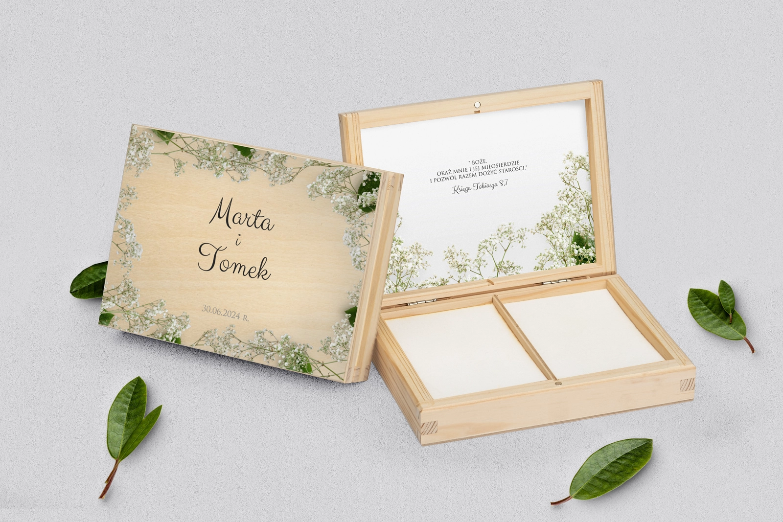 Na tej karcie produktu kupujesz Pudełka na obrączki w konfiguracji określonej w specyfikacji.