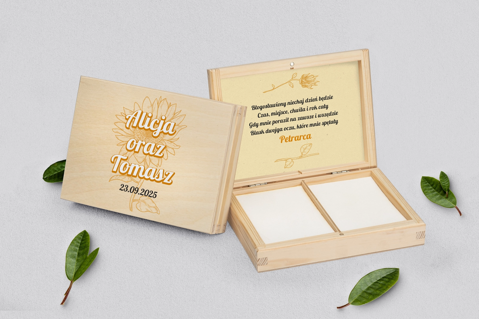 Pudełko na obrączki prostokątne naturalne - Sunflowers Motyw 1