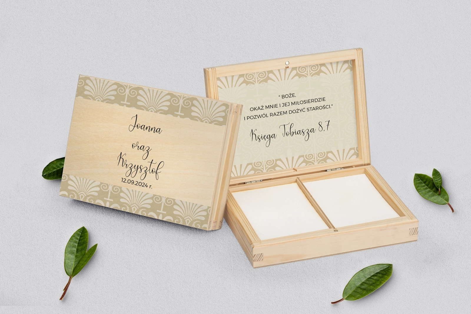 Pudełko na obrączki prostokątne naturalne - Vintage Motyw 1