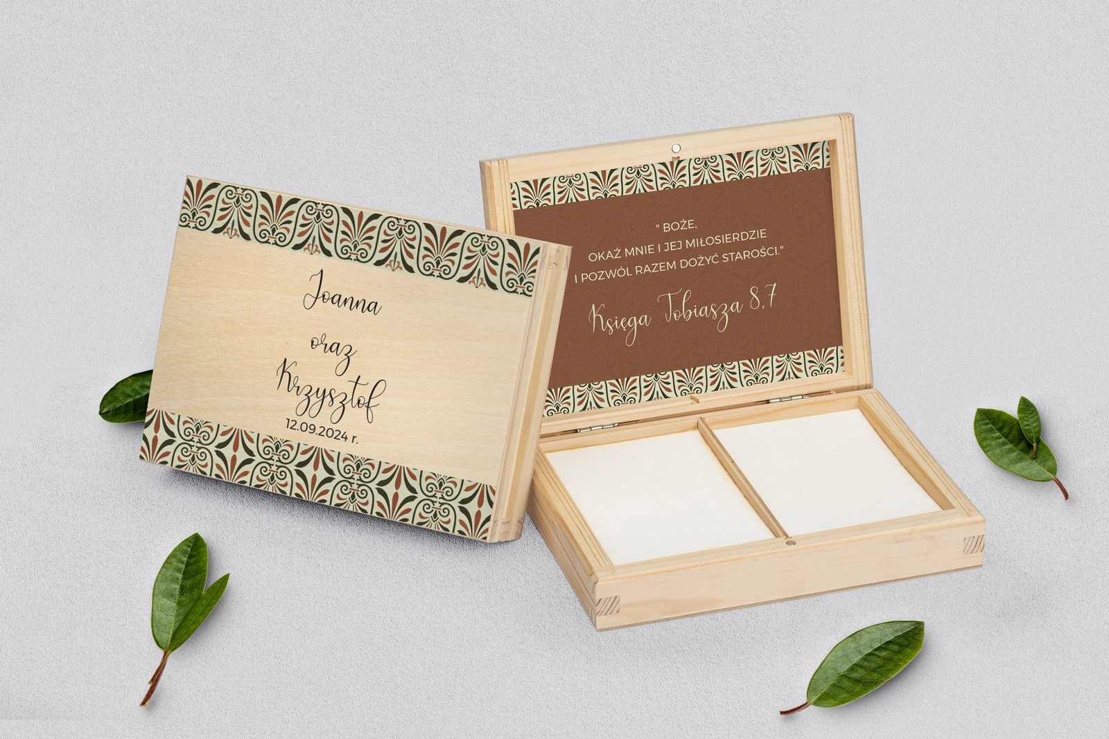 Na tej karcie produktu kupujesz Pudełka na obrączki w konfiguracji określonej w specyfikacji.