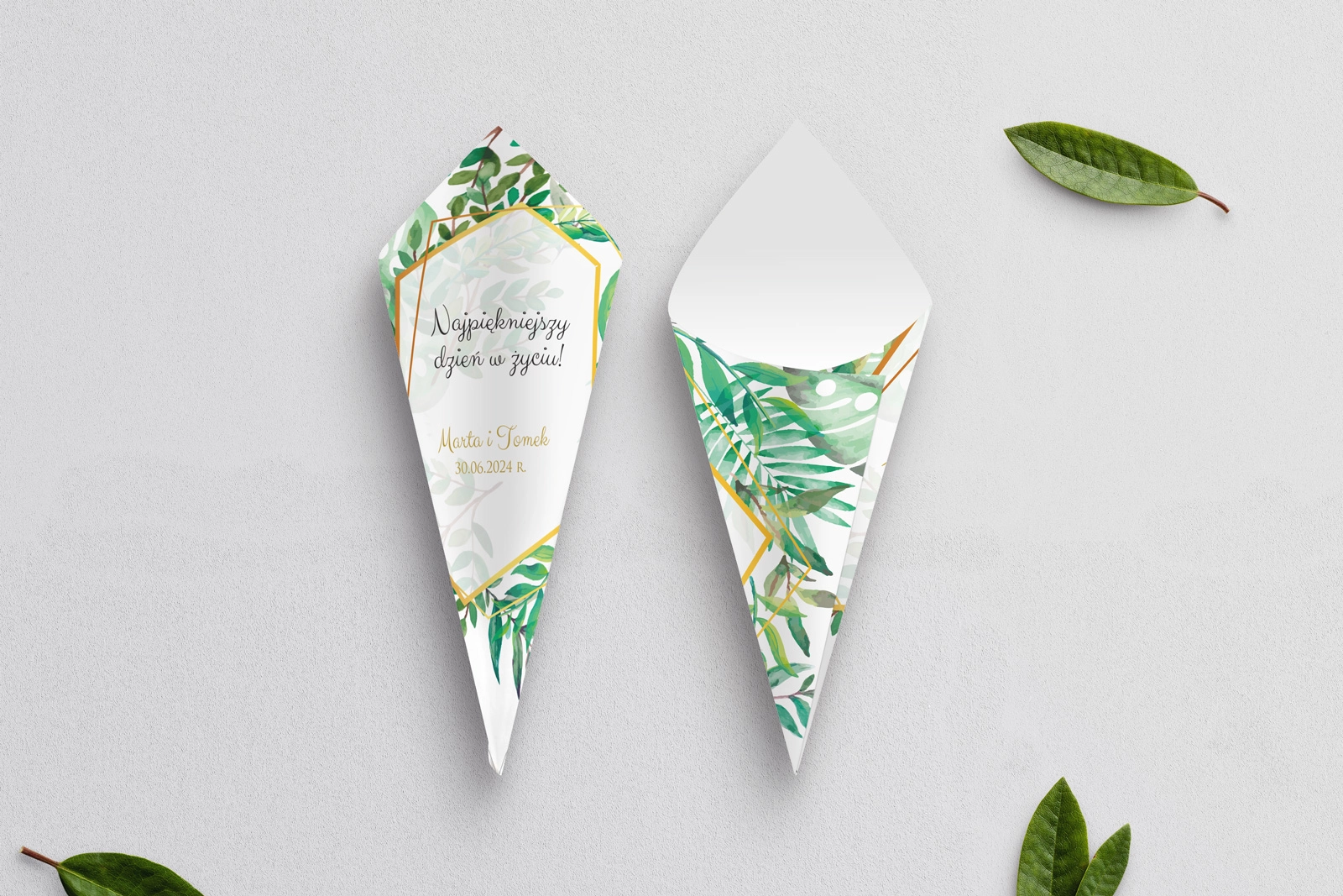 Rożek weselny pełni rolę pięknego pojemnika na płatki róż, słodycze, popcorn itp.