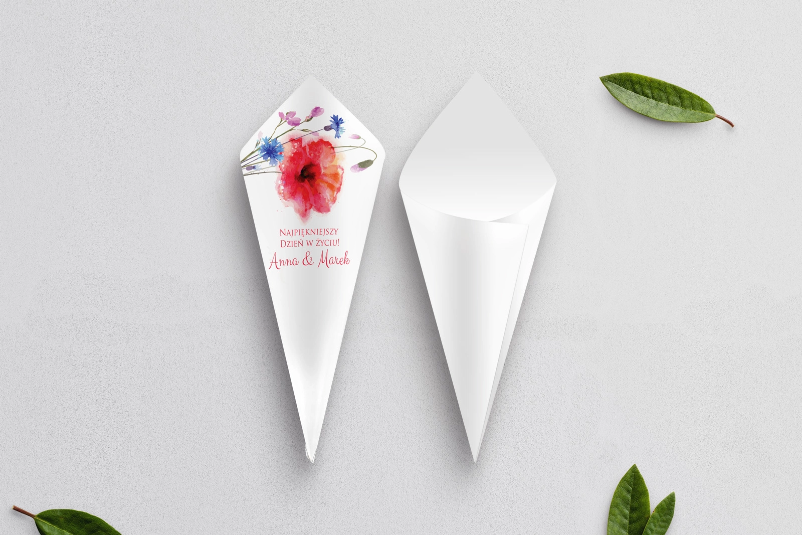 Spersonalizowany rożek weselny z waszym nazwiskiem i tekstem.