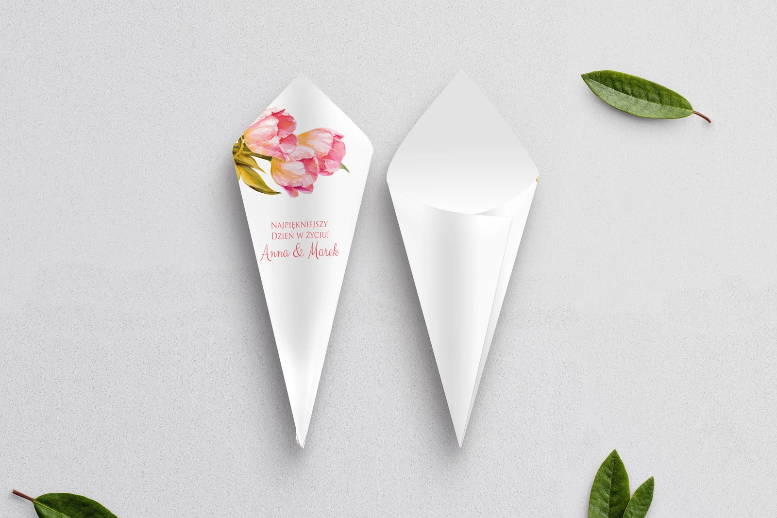 Rożek weselny pełni rolę pięknego pojemnika na płatki róż, słodycze, popcorn itp.