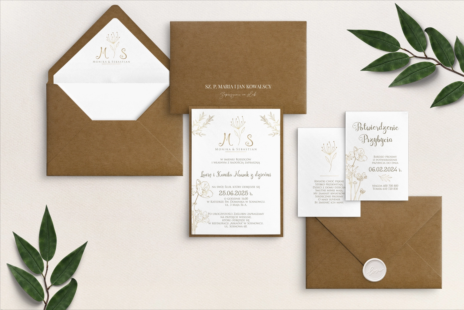 Wszystkie treści zaproszenia oraz dodatkowych wkładek są dowolnie personalizowane. Możesz zmienić każdą treść na swoim zaproszeniu. Podczas wypełniania Formularza Personalizacji opisz nam jak chcesz, aby wyglądało Twoje zaproszenie. Grafik przygotuje projekt skrojony specjalnie dla Ciebie.
