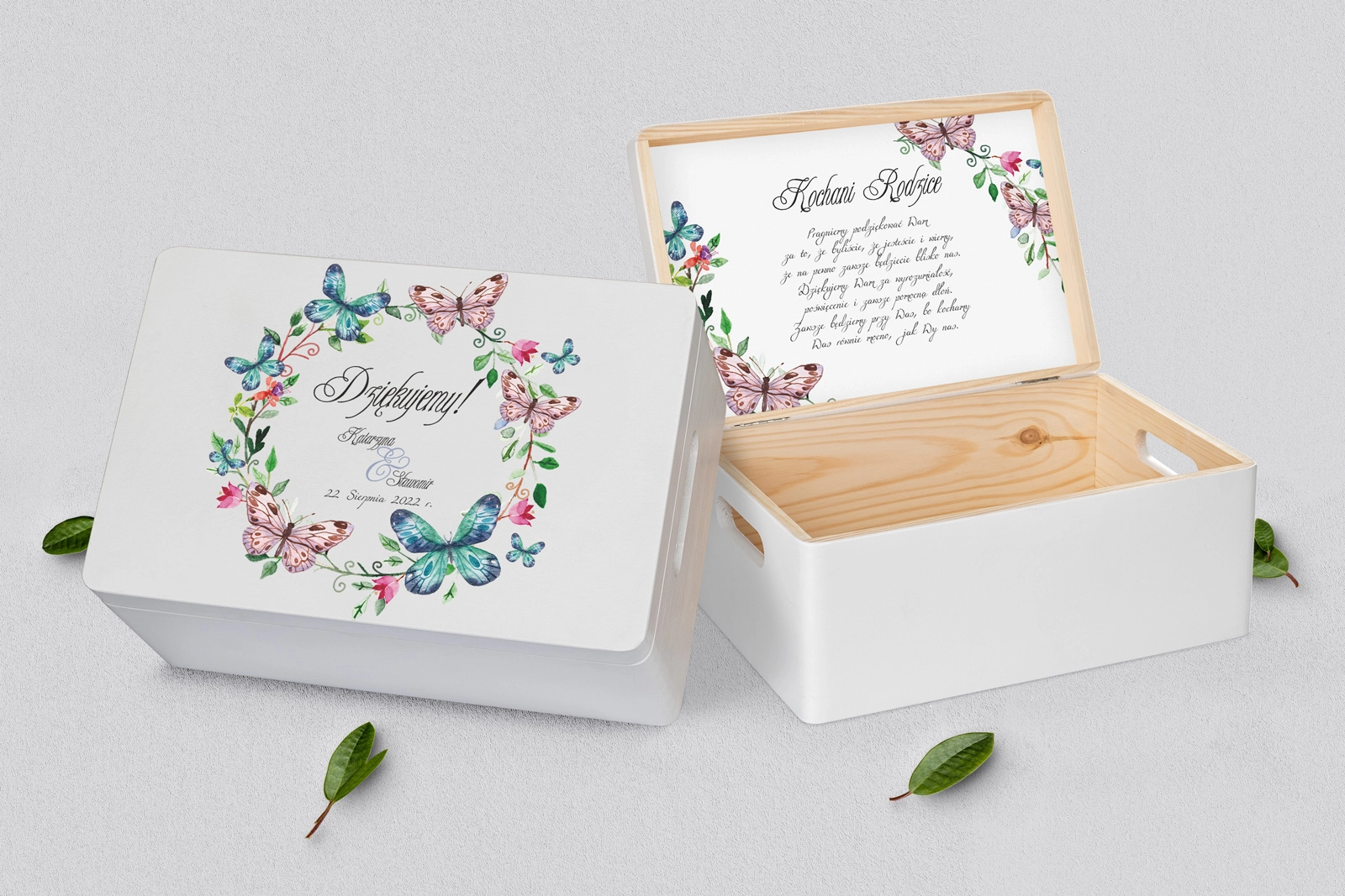 Skrzyneczka dla Rodziców - biała Akwarelowe Wianki Motyw 3
