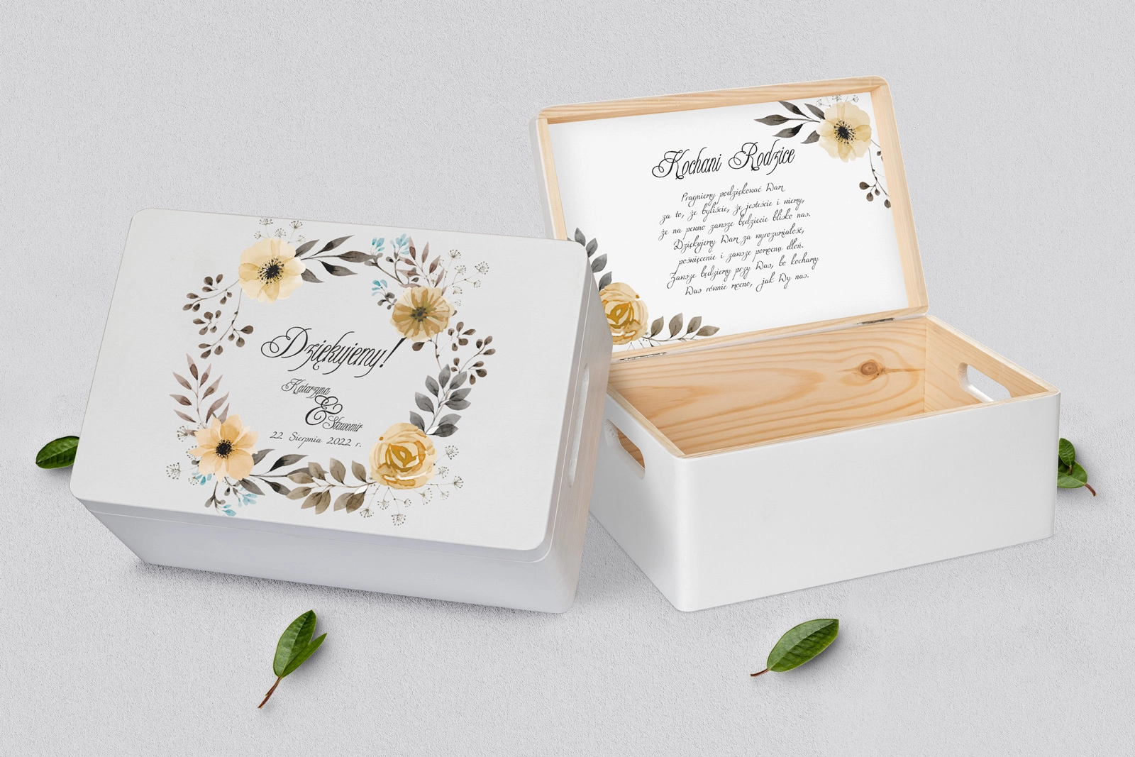 Skrzyneczka dla Rodziców - biała Akwarelowe Wianki Motyw 4