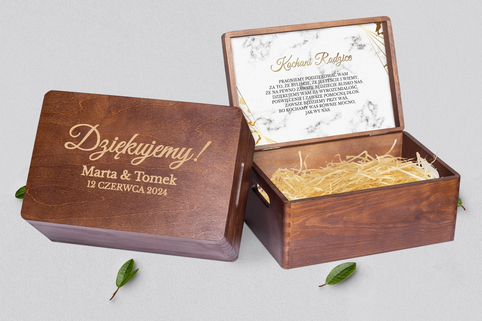 Skrzyneczka dla Rodziców - brązowa Marmur & Złoto - Motyw 4
