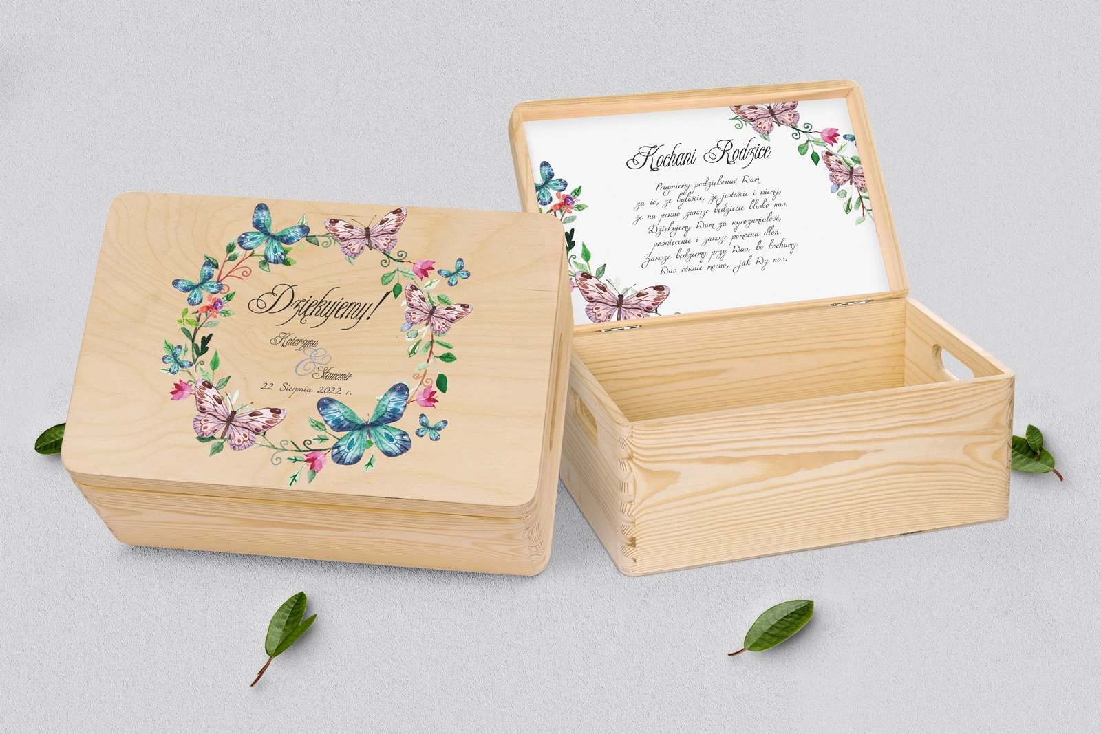 Skrzyneczka dla Rodziców - naturalna Akwarelowe Wianki Motyw 3