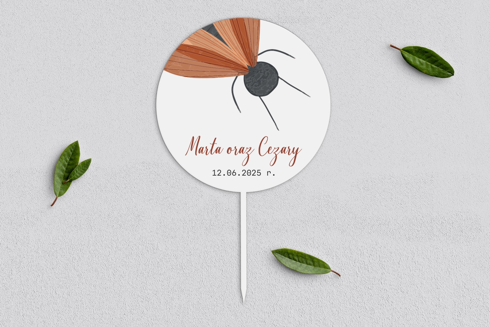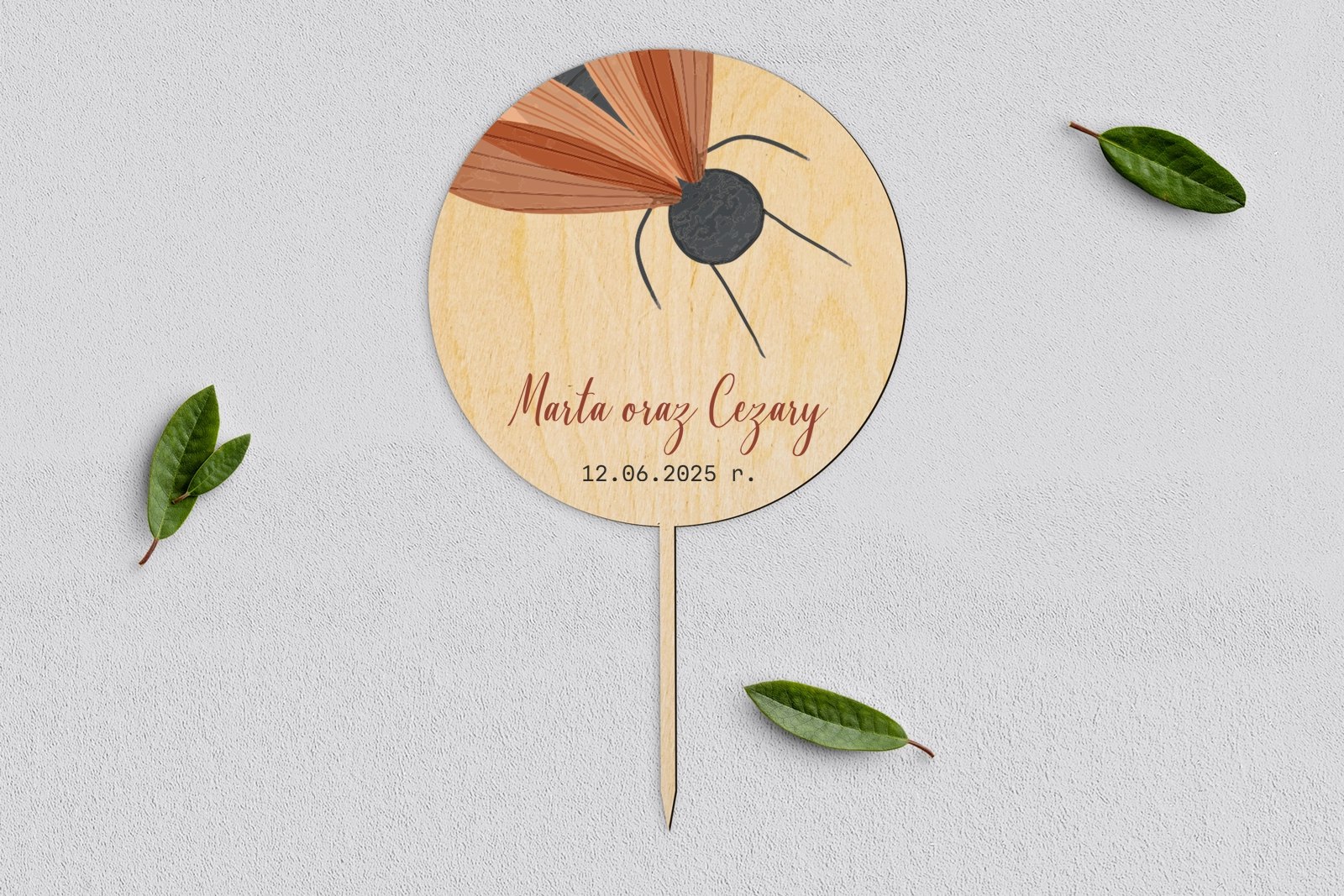 Spersonalizowany topper na tort weselny wykonany ze sklejki drewnianej lub białego akrylu.