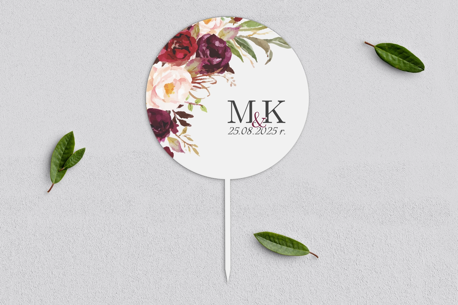 Spersonalizowany topper na tort weselny wykonany ze sklejki drewnianej lub białego akrylu.