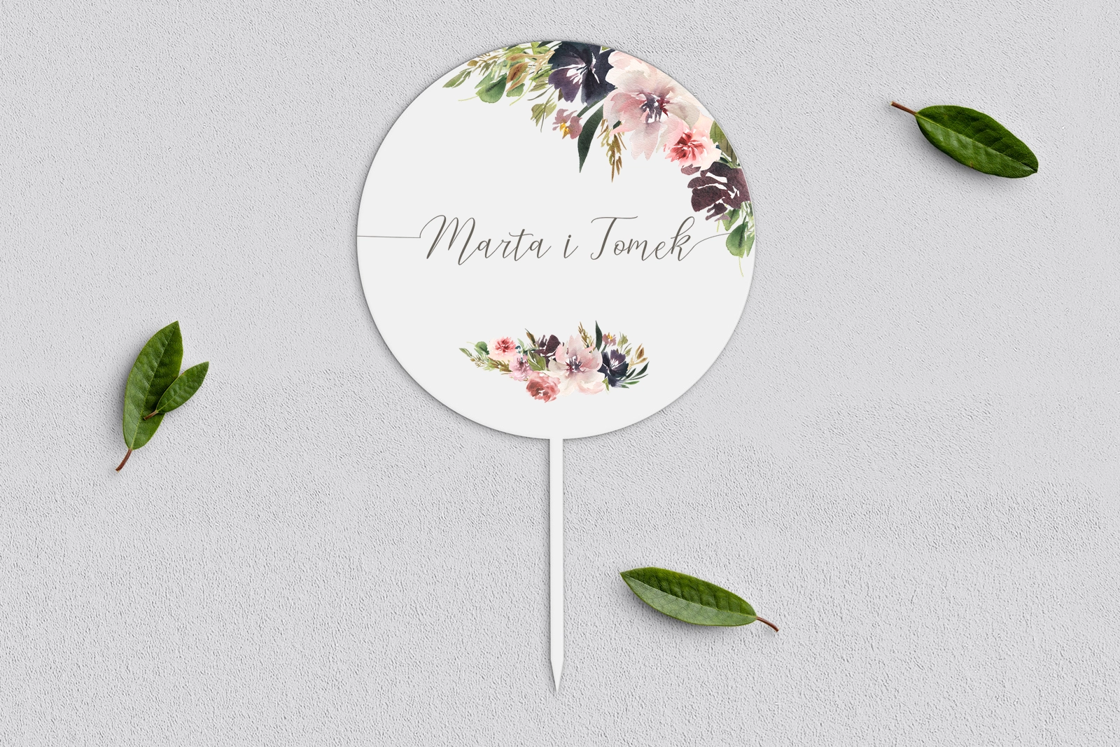 Spersonalizowany topper na tort weselny wykonany ze sklejki drewnianej lub białego akrylu.