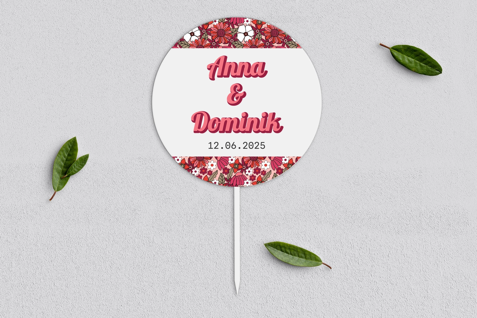 Spersonalizowany topper na tort weselny wykonany ze sklejki drewnianej lub białego akrylu.