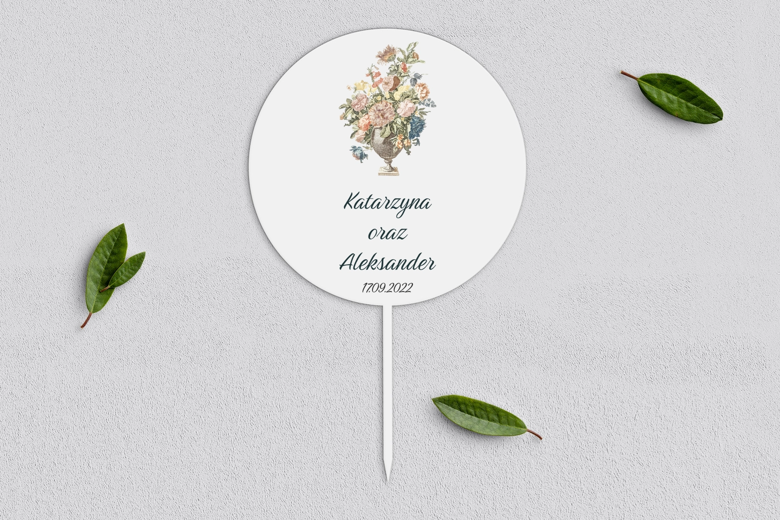 Spersonalizowany topper na tort weselny wykonany ze sklejki drewnianej lub białego akrylu.