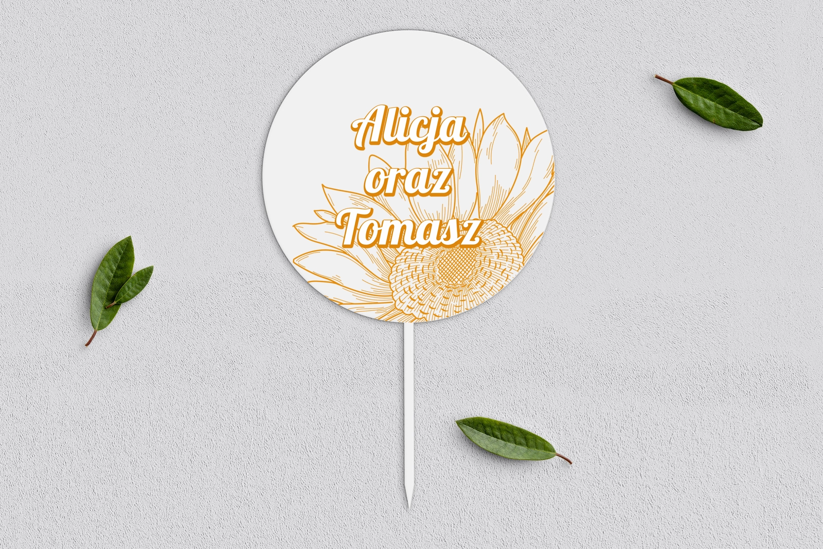 Spersonalizowany topper na tort weselny wykonany ze sklejki drewnianej lub białego akrylu.