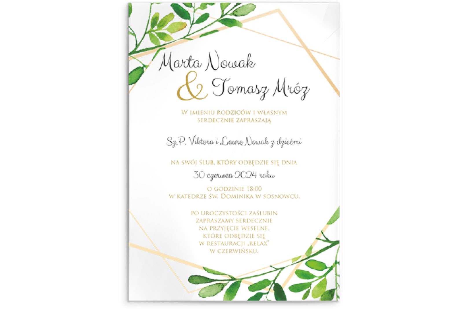 | Rozmiar zaproszenia | 148x105 mm (+- 2mm) |