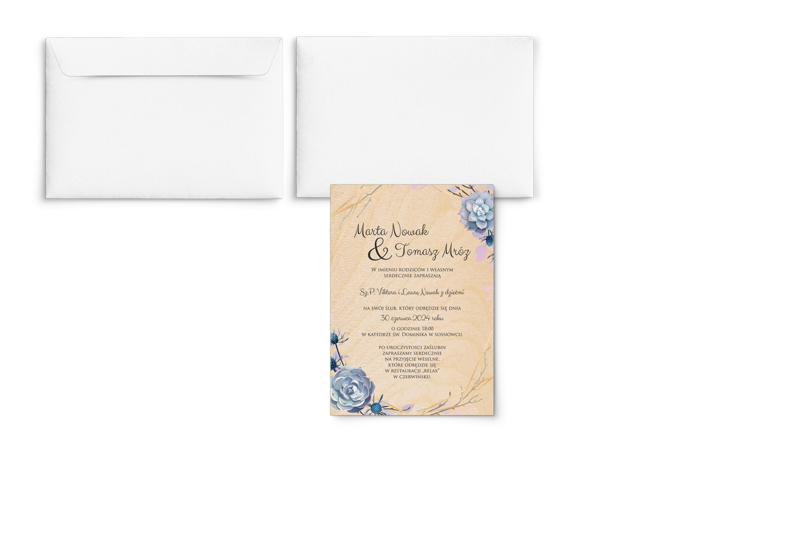 Nie znalazłeś/aś dodatków do tego zaproszenia? Nie martw się! Napisz do nas, a specjalnie dla Ciebie zaprojektujemy dodatek którego potrzebujesz i dodamy go bezpłatnie na stronę do zakupu.