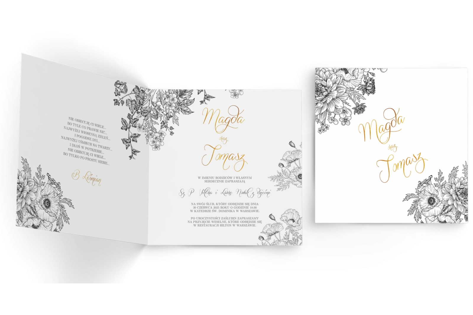 Zaproszenia ślubne Adore - Składane Kwadrat Motyw 2