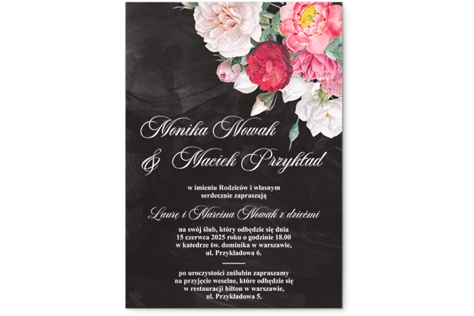 Zaproszenia ślubne Black Flowers - Akrylowe Motyw 3