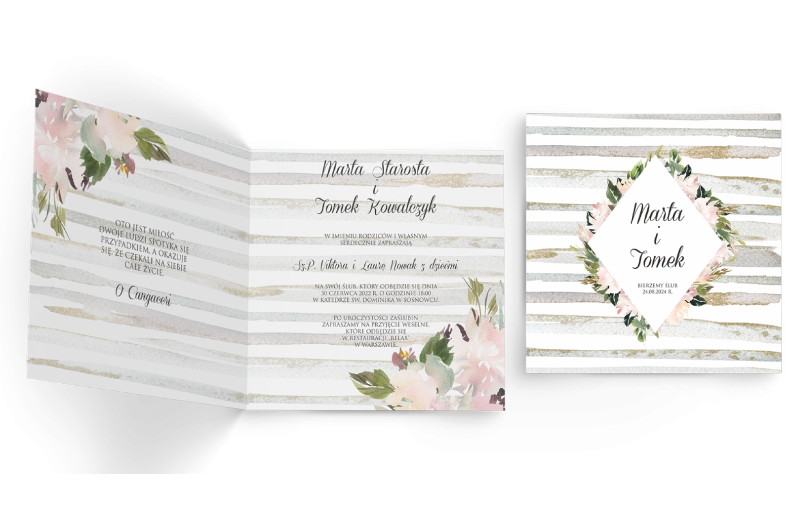 Zaproszenia ślubne Akwarelka - Składane Kwadrat Motyw 1