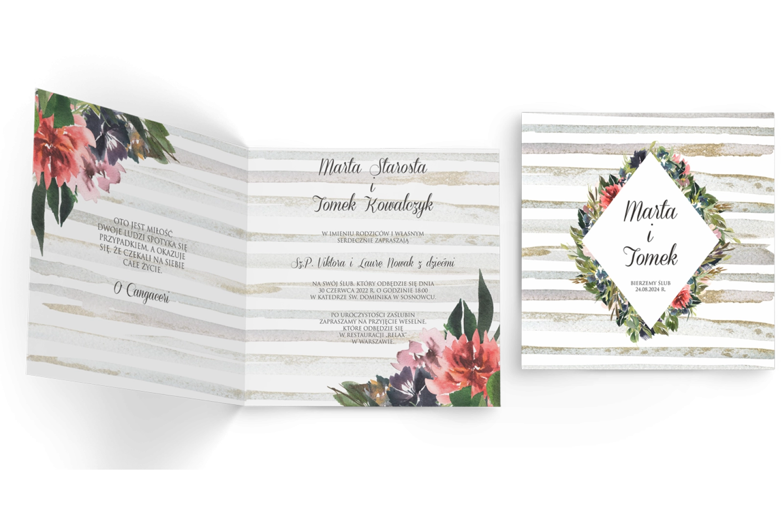 Zaproszenia ślubne Akwarelka - Składane Kwadrat Motyw 3