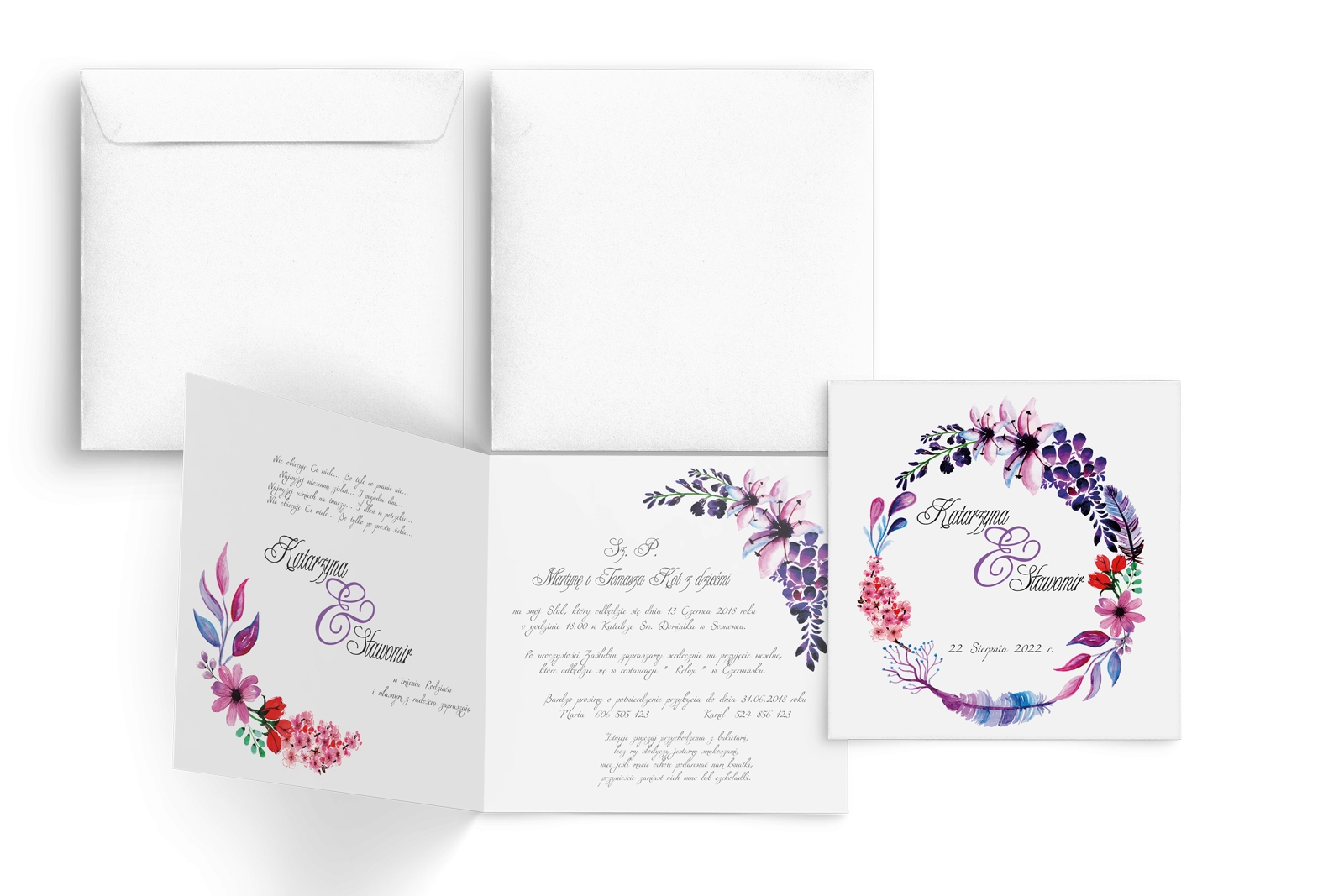 Zaproszenia ślubne Akwarelowe Wianki - Motyw 7