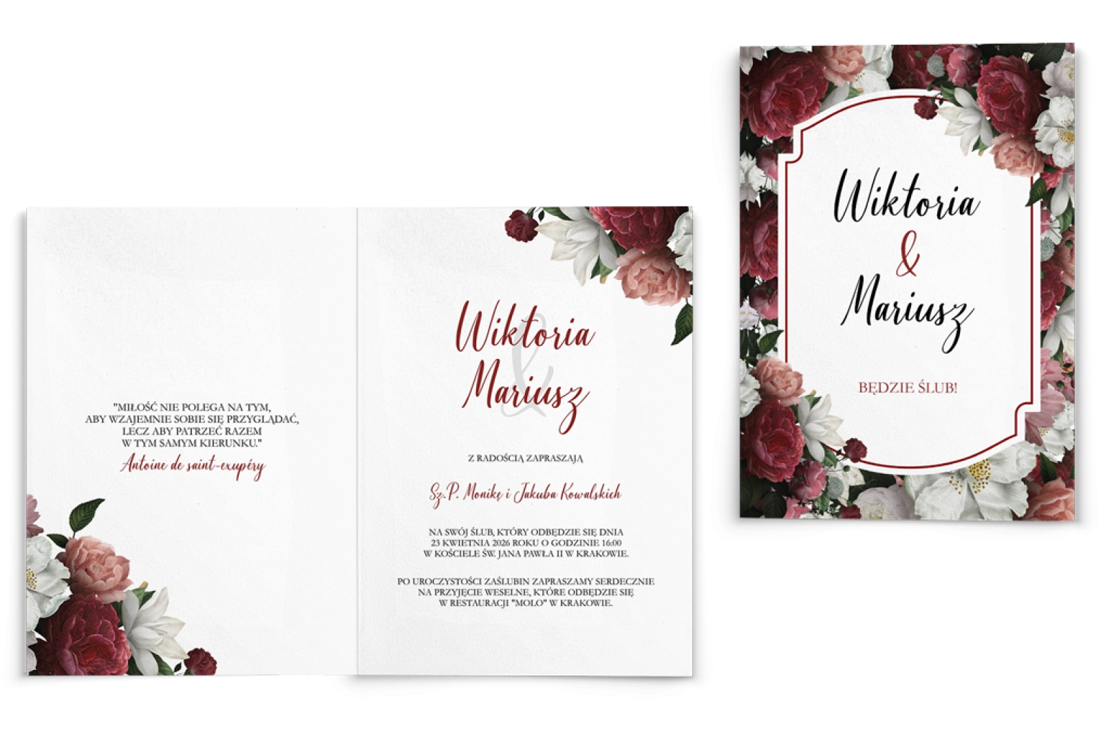 Zaproszenia ślubne Amore Rosso - Składane Motyw 3