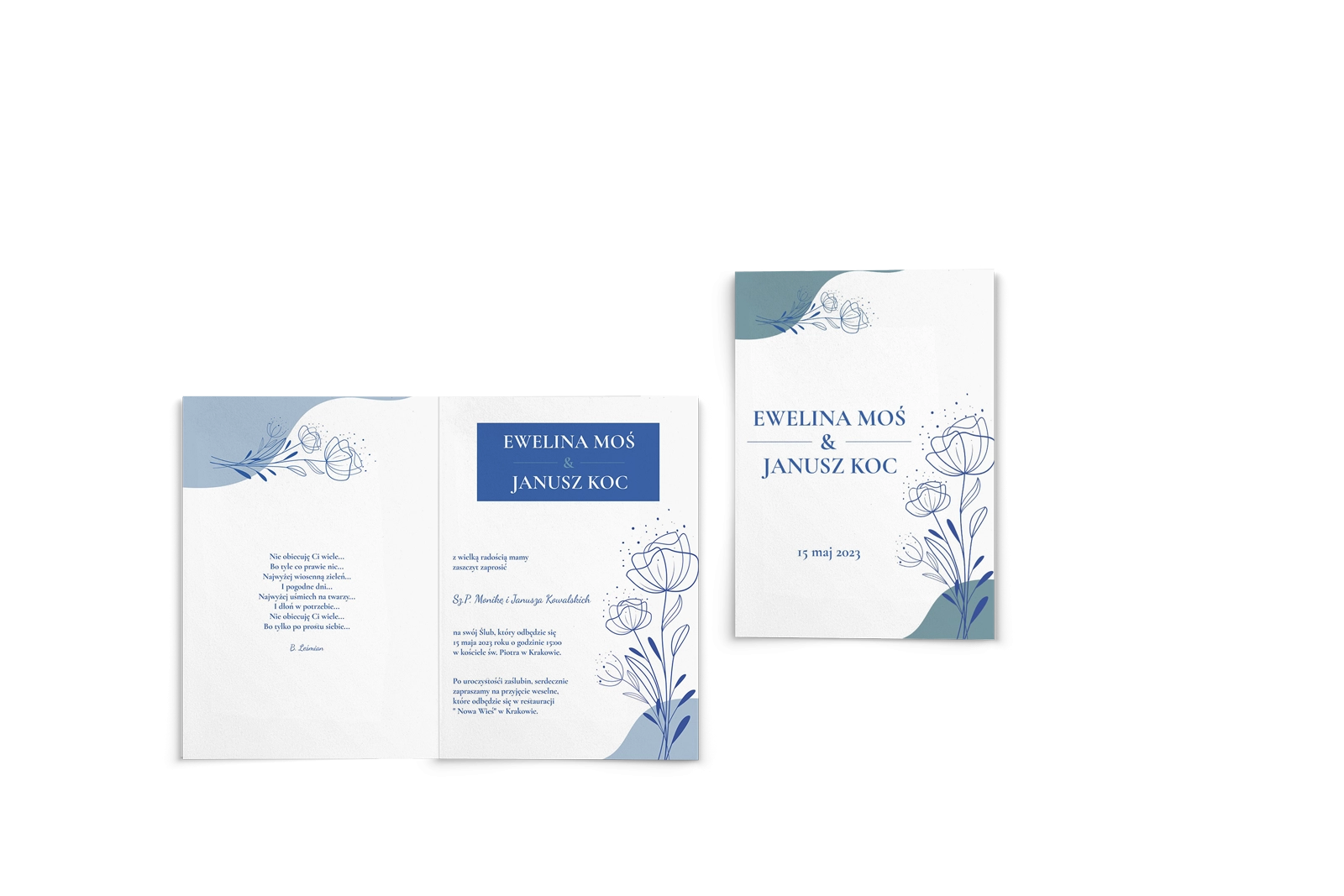 Wszystkie treści zaproszenia oraz dodatkowych wkładek są dowolnie personalizowane. Możesz zmienić każdą treść na swoim zaproszeniu. Podczas wypełniania Formularza Personalizacji opisz nam jak chcesz, aby wyglądało Twoje zaproszenie. Grafik przygotuje projekt skrojony specjalnie dla Ciebie.