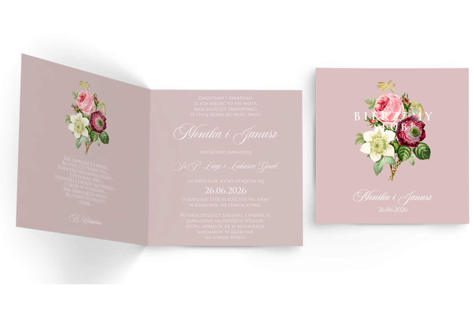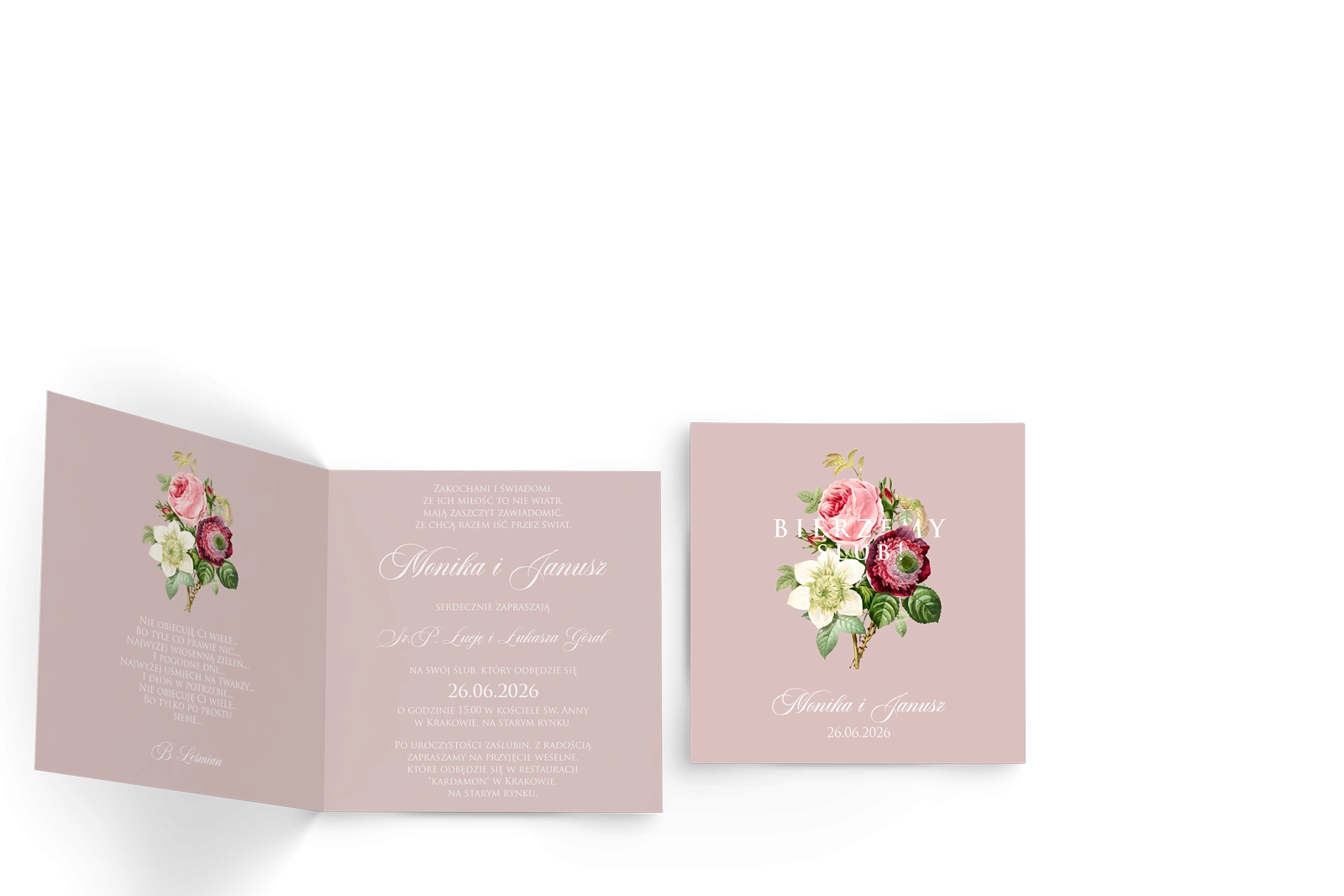 Zaproszenia ślubne Bella - Składane Kwadrat Motyw 3