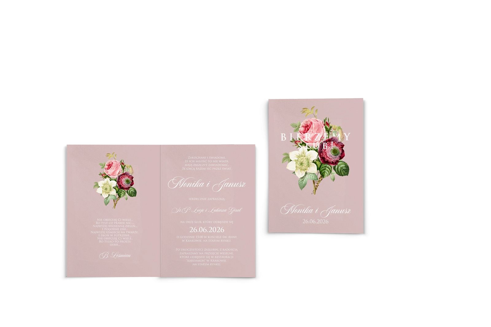 Rozmiar zaproszenia z papierem ozdobnym 150x108 mm (+- 2mm)