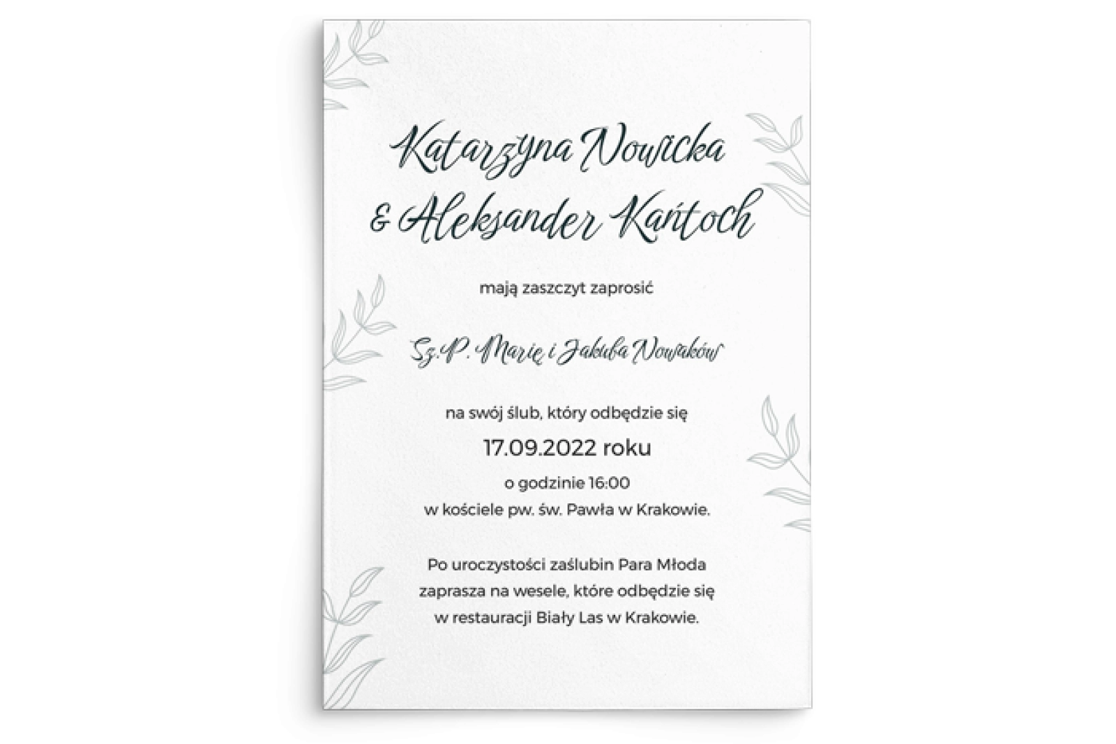 Rozmiar zaproszenia 142x100 mm (+- 2mm)
