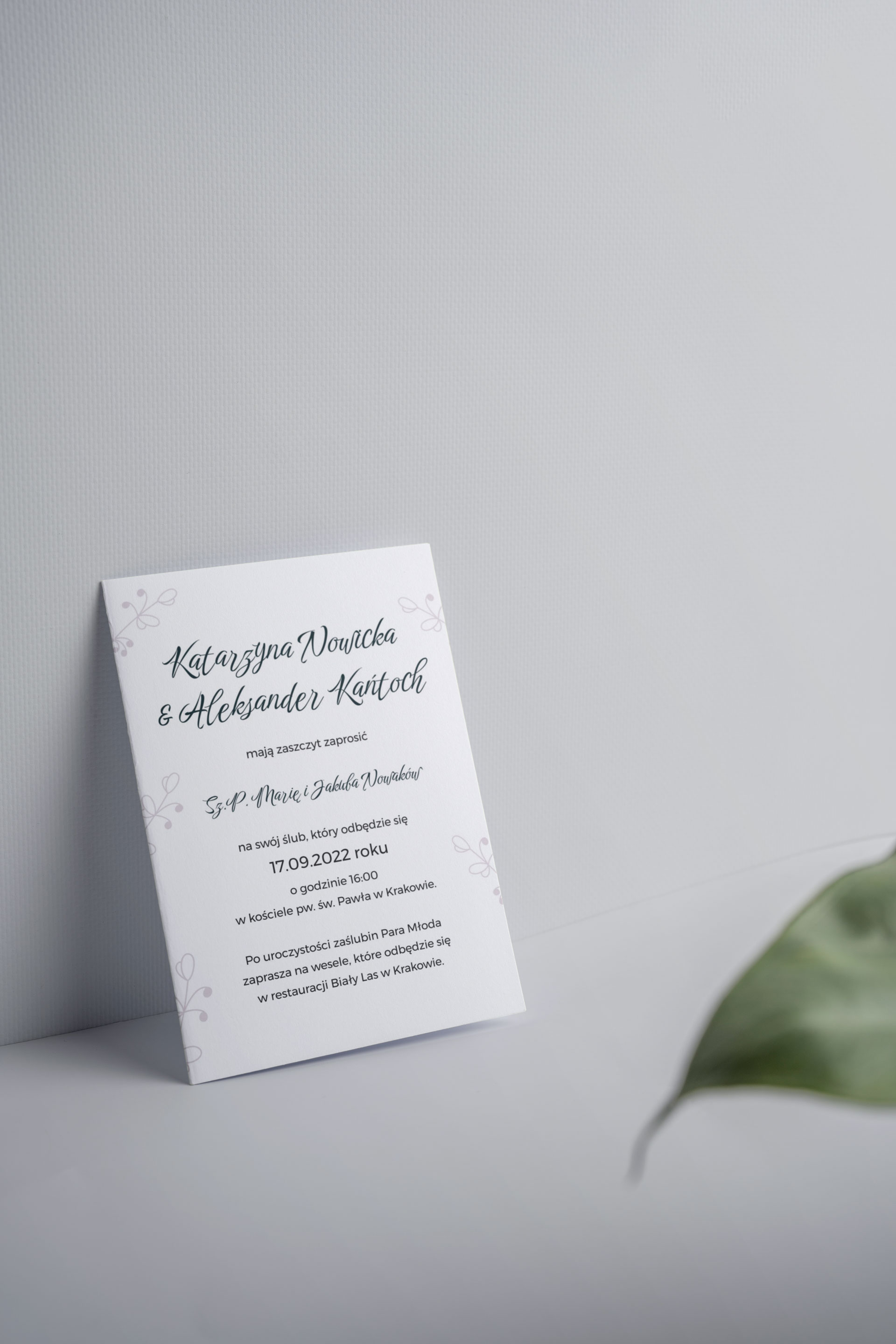 Zaproszenia ślubne Białe liście - Motyw 3
