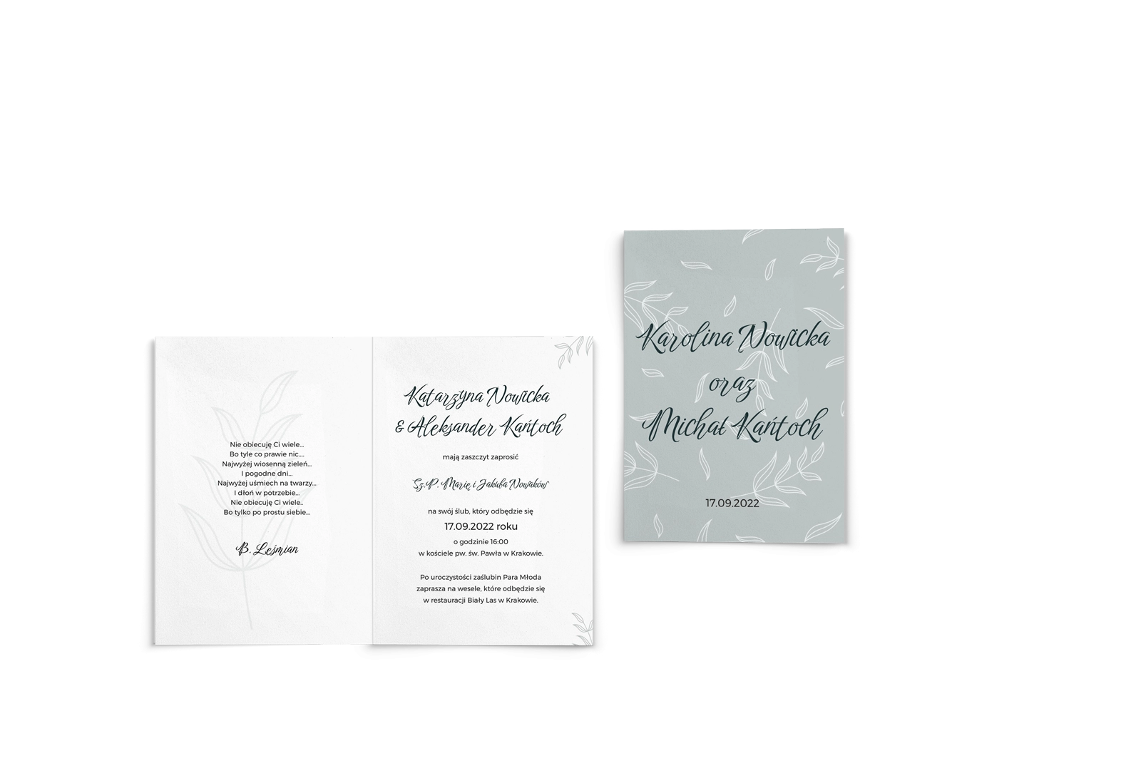 Wszystkie treści zaproszenia oraz dodatkowych wkładek są dowolnie personalizowane. Możesz zmienić każdą treść na swoim zaproszeniu. Podczas wypełniania Formularza Personalizacji opisz nam jak chcesz, aby wyglądało Twoje zaproszenie. Grafik przygotuje projekt skrojony specjalnie dla Ciebie.