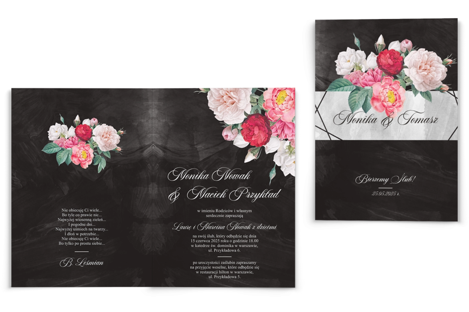Zaproszenia ślubne Black Flowers - Składane Motyw 2