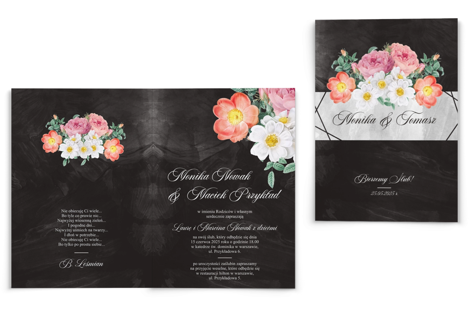Zaproszenia ślubne Black Flowers - Składane Motyw 3