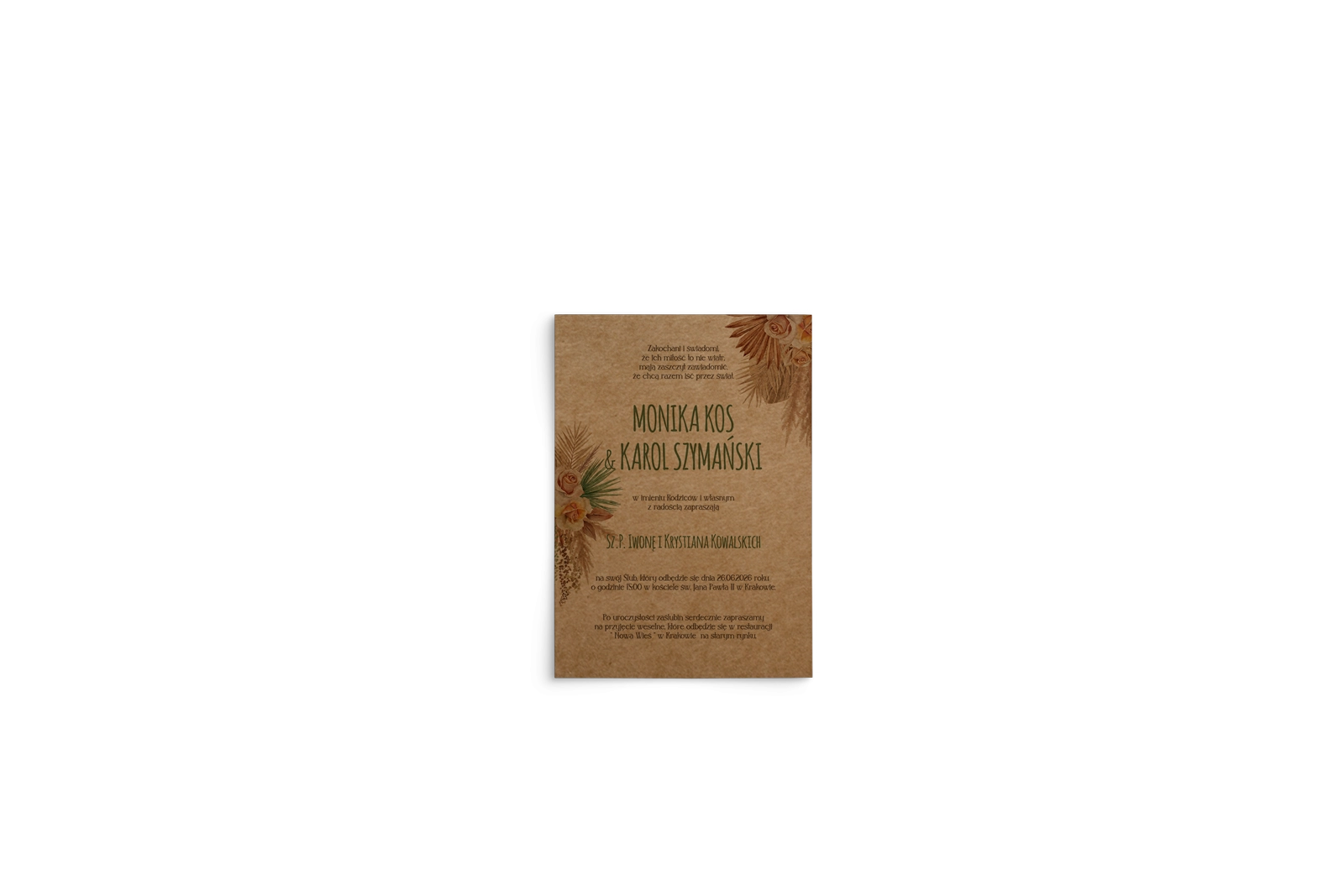 | Typ zaproszenia | Na kartach - Pionowe - Nierozkładane |