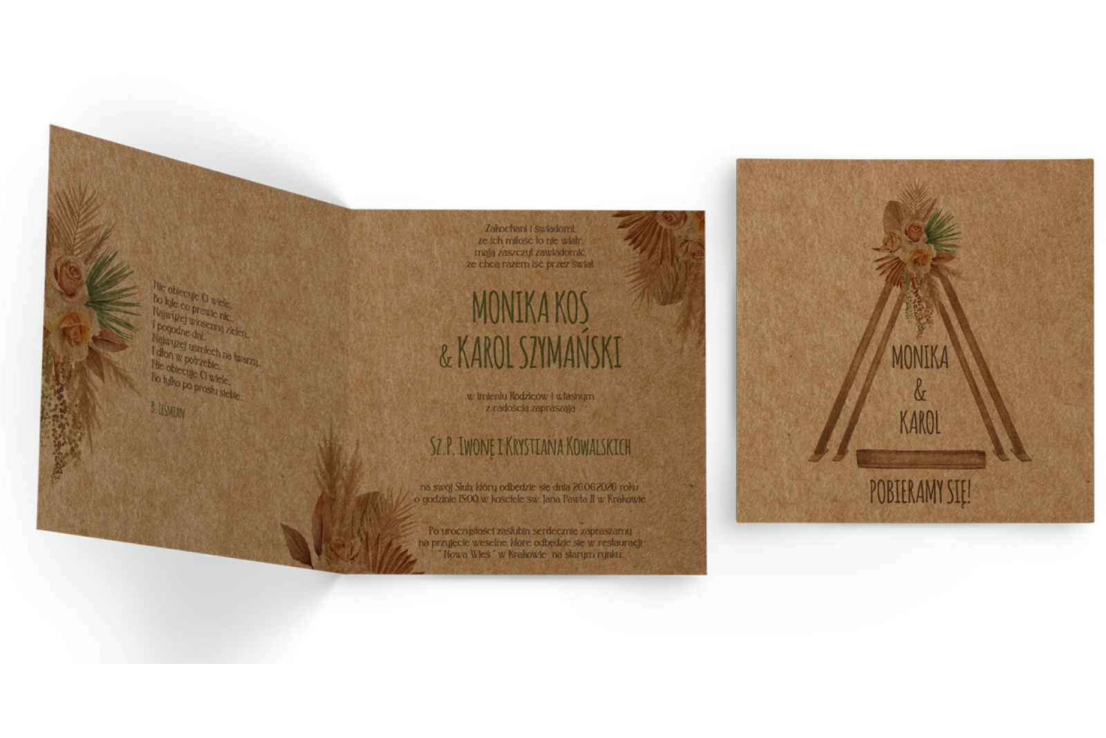 Zaproszenia ślubne Boho - Składane Kwadrat Motyw 2