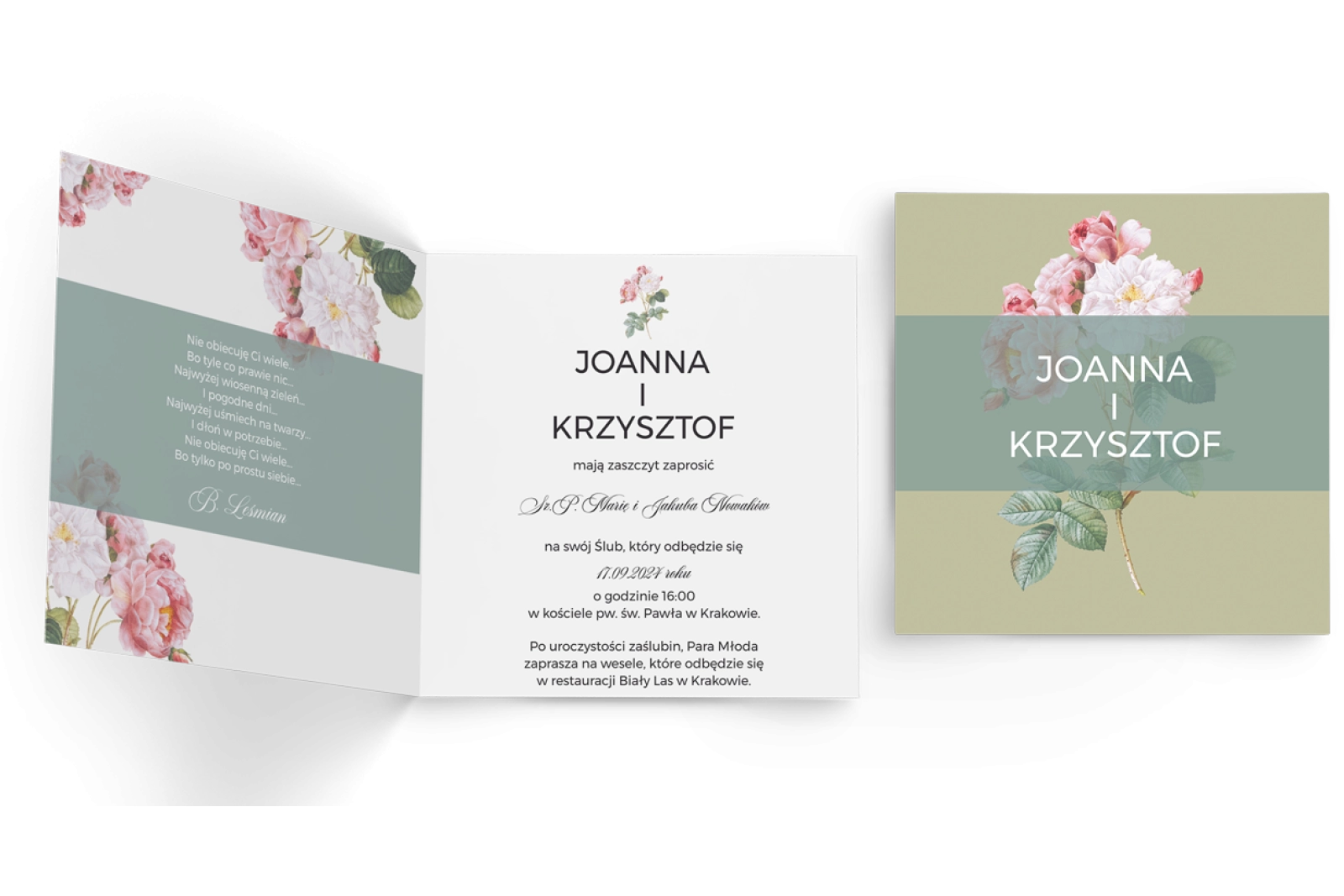 Zaproszenia ślubne Botanic - Składane Kwadrat Motyw 3