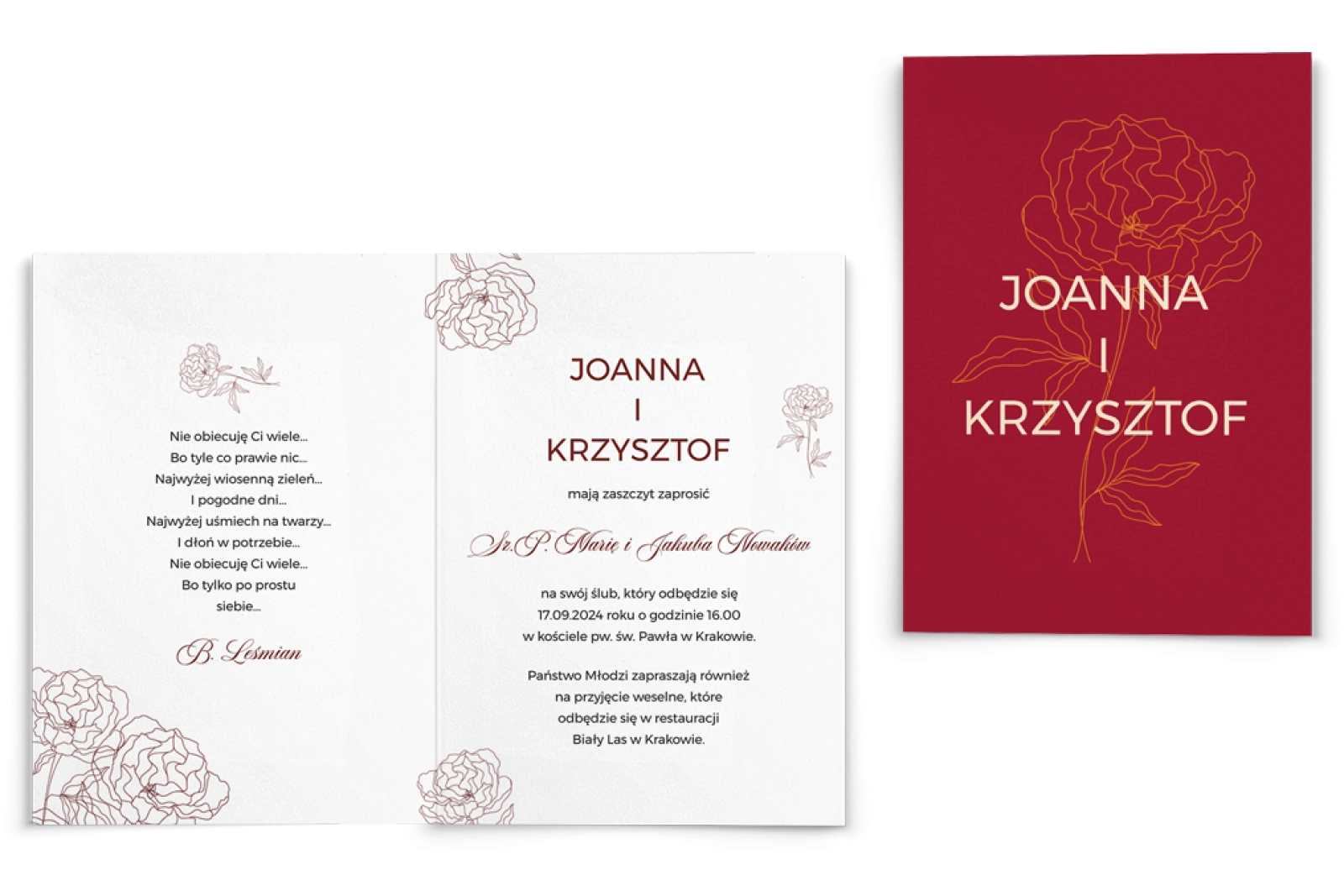 Zaproszenia ślubne Burgundy - Składane motyw 1