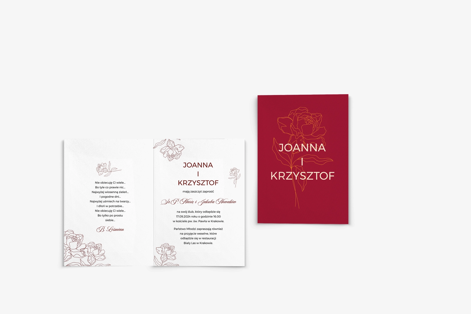 Wszystkie treści zaproszenia oraz dodatkowych wkładek są dowolnie personalizowane. Możesz zmienić każdą treść na swoim zaproszeniu. Podczas wypełniania Formularza Personalizacji opisz nam jak chcesz, aby wyglądało Twoje zaproszenie. Grafik przygotuje projekt skrojony specjalnie dla Ciebie.